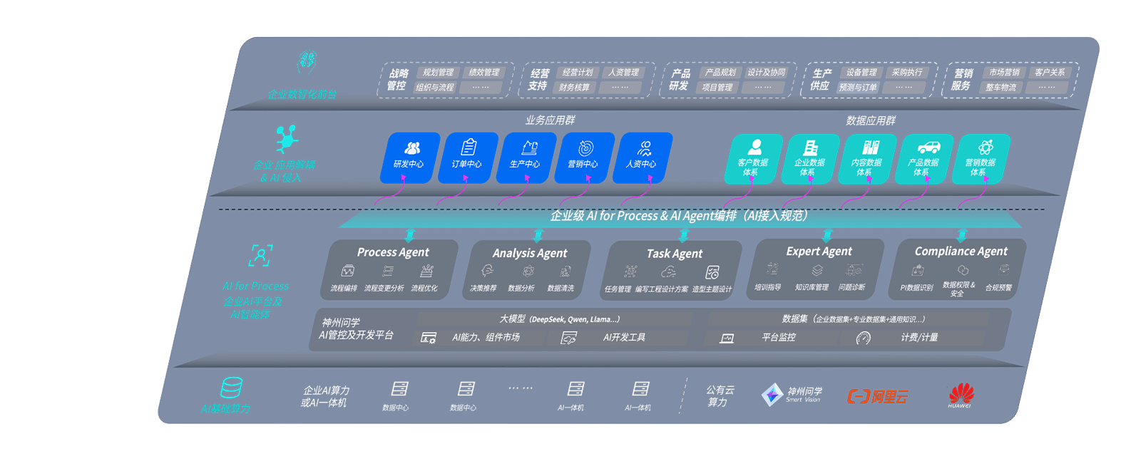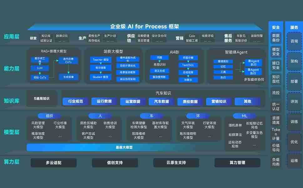 端到端的一站式AI工作空间深度融合了从企业战略规划到日常经营的全流程业务板块,,,定向解决车企内部领域多、、部门多、、、、链条长、、、场景碎片化等难题,,,,支持车企快速构建以AI为核心的生产力写作体系,,实现任务执行与AI能力的无缝集成与交互