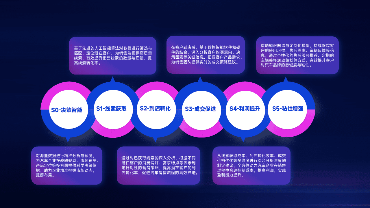 通过拓宽潜在客户来源、、优化线索分配并提高到店转化率,,,以增强销售效率。。。。同时,,,利用线索数据不断优化分析模型,,,有效提升转化率,,,,扩大营销影响力。。。。